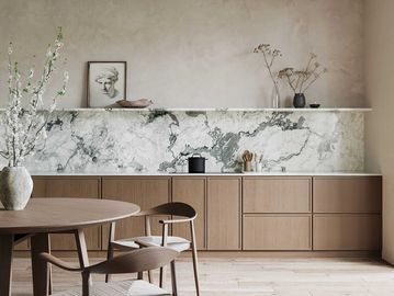 The neutral yet versatile palette bathes your kitchen in soothing natural soft muted color shades. The cabinets crafted from exquisite rift cut oak wrap you in a cozy and comforting embrace.